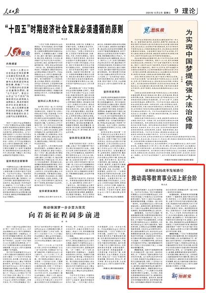 12月2日,《人民日报》理论版刊发了校长程永波的署名文章《谋划好高校改革发展路径 推动高等教育事业迈上新台阶》。