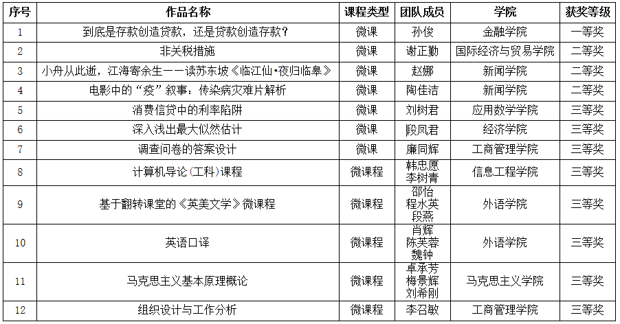 近日,由江苏省教育厅指导、江苏省高校微课教学比赛组委会主办、江苏省高等学校教育技术研究会承办的2020年江苏省高校微课教学比赛结果揭晓,bat365有12件作品获奖。其中,金融学院孙俊老师的“到底是存款创造贷款,还是贷款创造存款?”获一等奖,国际经济与贸易学院谢正勤等3位老师的作品获二等奖,应用数学学院刘树君等8位老师的作品获三等奖。