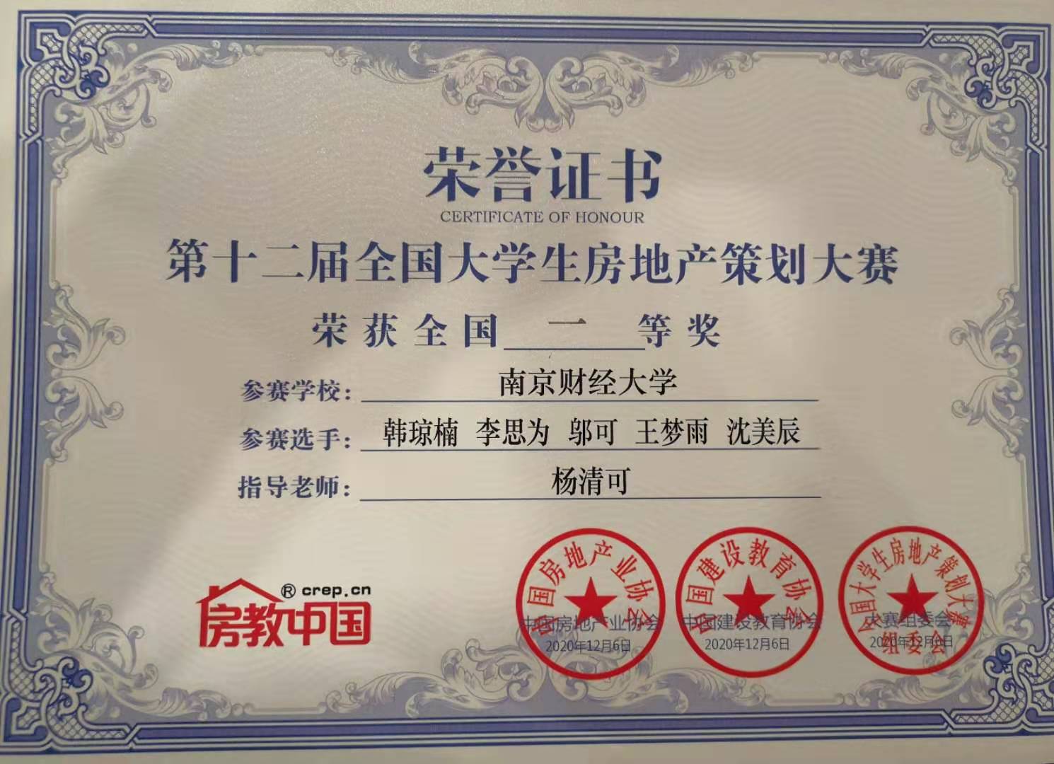 bat365学子获第十二届全国大学生房地产策划大赛一等奖