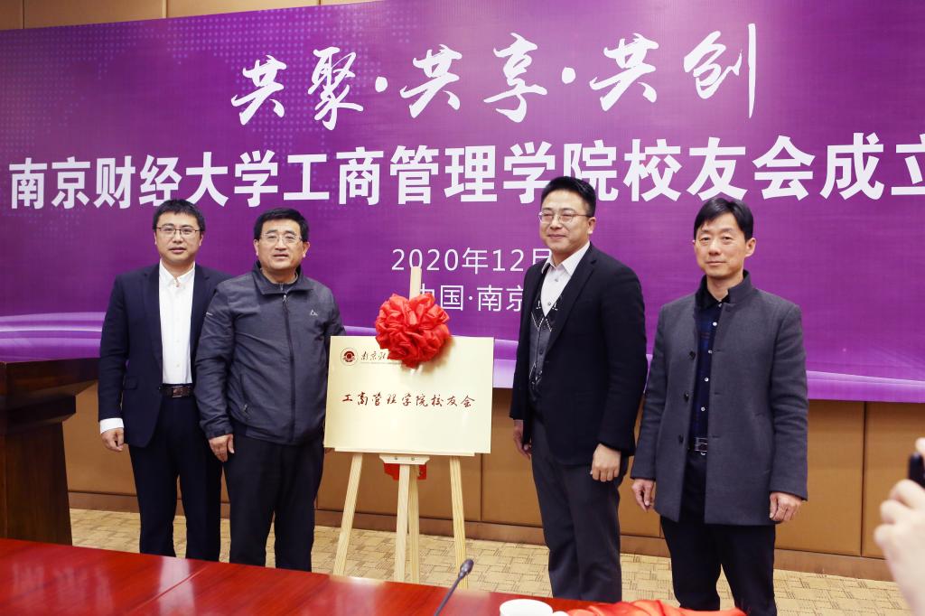 乔均副校长代表学校向范云涛授予工商管理学院校友会会旗,并和对外联络处副处长(主持工作)王立峰、工商管理学院院长万绪才、会长范云涛共同揭牌。乔均副校长为当选工商管理学院校友会顾问委员会代表及负责人颁发聘书。