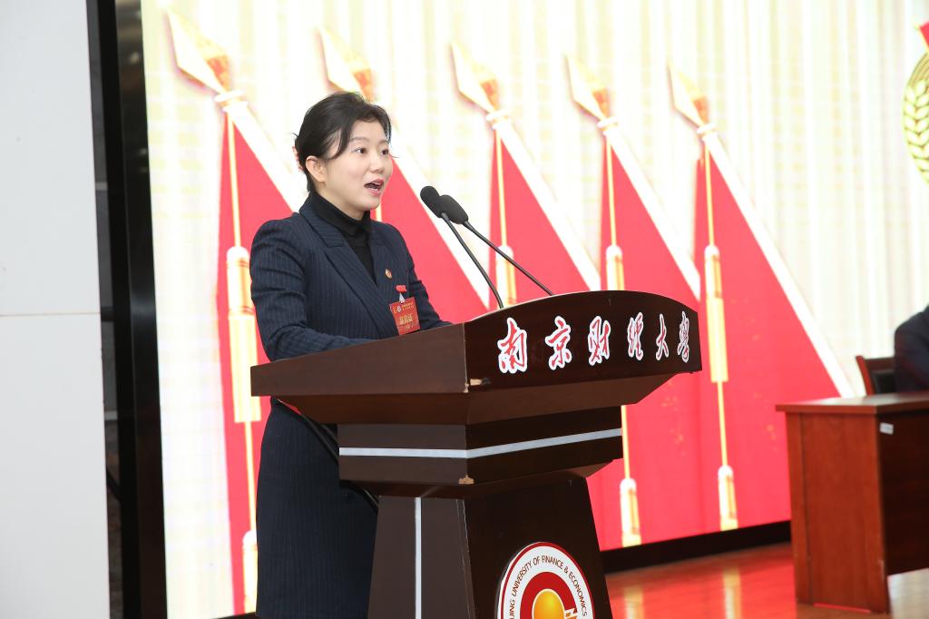 南京大学团委书记蔡颖蔚代表各兄弟高校团委致辞。她向大会的召开表示祝贺,并表示,南财团委在第二次团代会召开以来,为学校事业发展、学生成长成才和共青团深化改革作出了积极贡献,开创了南财共青团事业的新局面。此次团代会的召开对于南财共青团事业发展具有里程碑意义。南大团委也将继续与南财团委紧密合作,不断引领广大青年敢于有梦,勇于追梦,勤于圆梦,为推动江苏高质量发展走在前列,共同奏响青春最强音。
