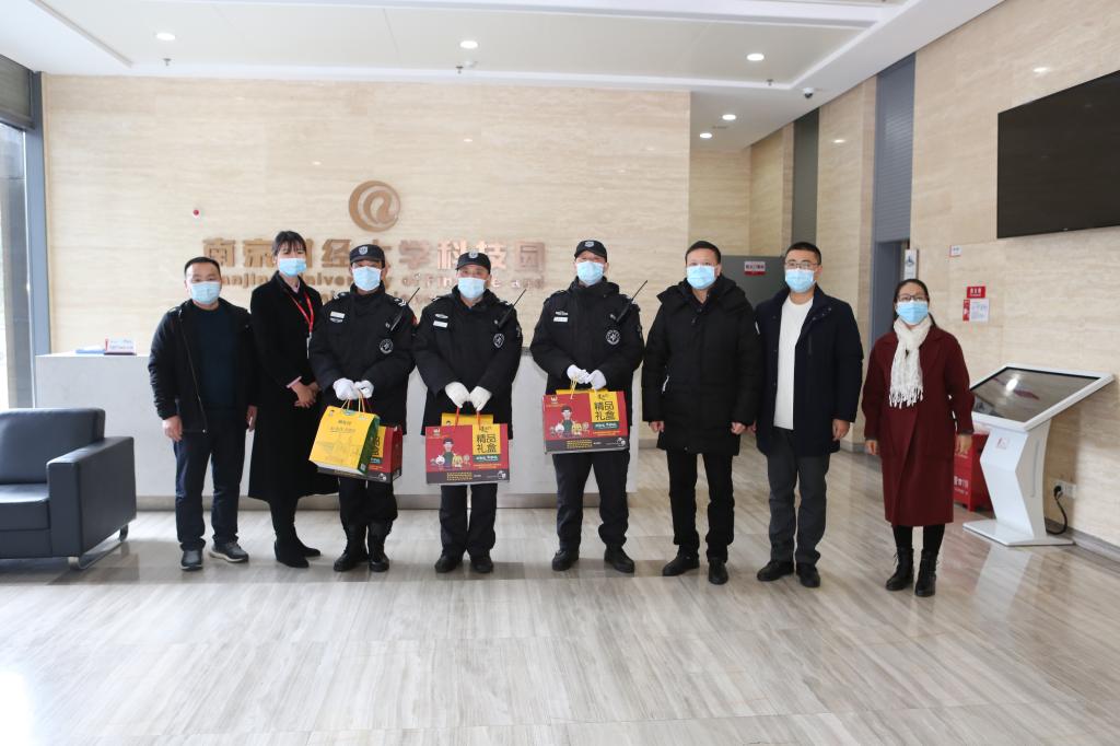 2月11日上午,在新春佳节来临之际,校党委书记张利民、校长程永波分别带队深入福建路校区和仙林校区,看望慰问假期坚守在工作岗位上的教职员工和留校学生,向他们致以新春祝福和诚挚问候。党校办、党委宣传部、学生处、保卫处、后勤保障处等相关部门负责同志陪同慰问。
