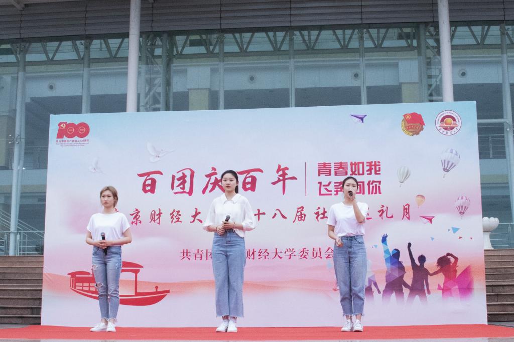 开幕式上,大学生合唱团带来的小合唱《我爱你中国》赢得了在场师生的阵阵掌声;跆拳道协会带来跆拳道《离火》,表演铿锵有力,尽显中华底蕴的同时,将现场气氛推向了高潮;扬子文学社表演的《庆百年诗朗诵》,仿佛带大家回到了中国共产党人坚决反对民族压迫和阶级压迫而奋起斗争的年代。此外,轮滑、书画、剪纸、手工等多个社团进行了作品和才艺展示。