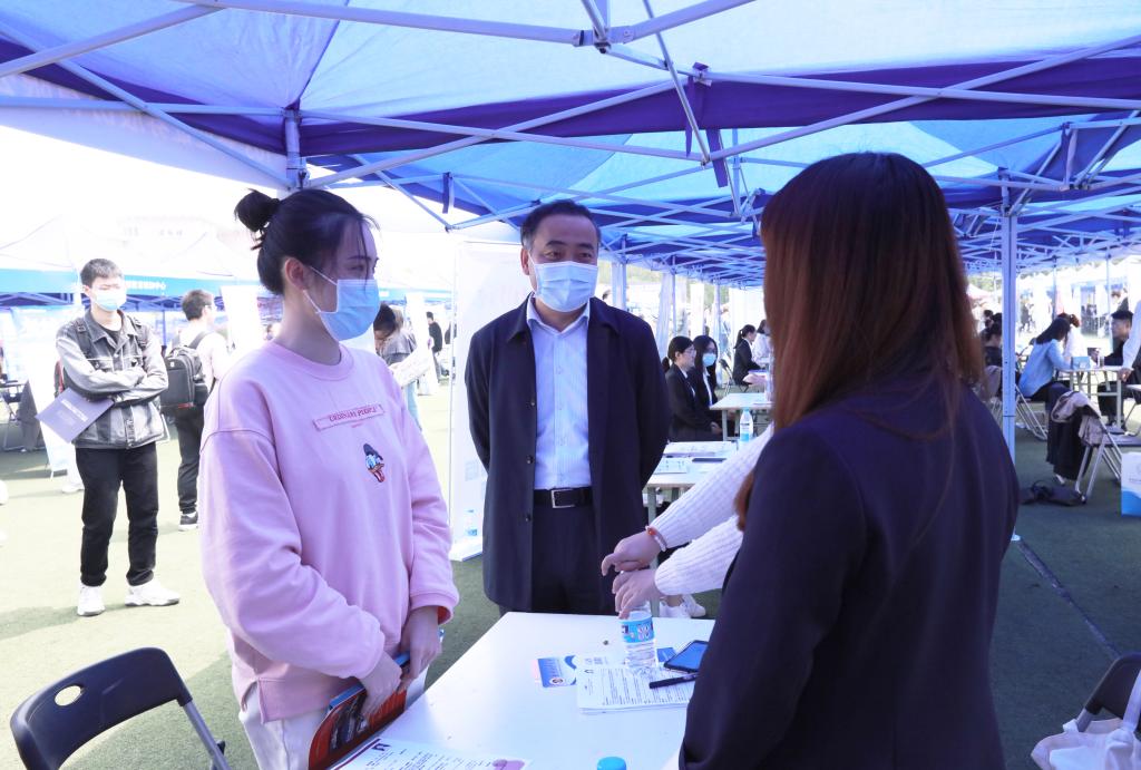 4月28日、29日上午,江苏省2021届高校毕业生“百校千场万岗”就业促进行动系列活动之“宁聚英才 乐业金陵”bat365官方网站2021届毕业生春季校园招聘会在仙林校区西苑田径场成功举办。校党委书记张利民,校长程永波,校党委常委、副校长李群深入招聘现场,并与用人单位及求职毕业生亲切交谈。相关职能部门负责人、各学院中层干部、学工秘书、研究生秘书、毕业班辅导员来到现场了解用人单位需求,积极推荐毕业生。2021届毕业生、部分2022届毕业生参加招聘会。