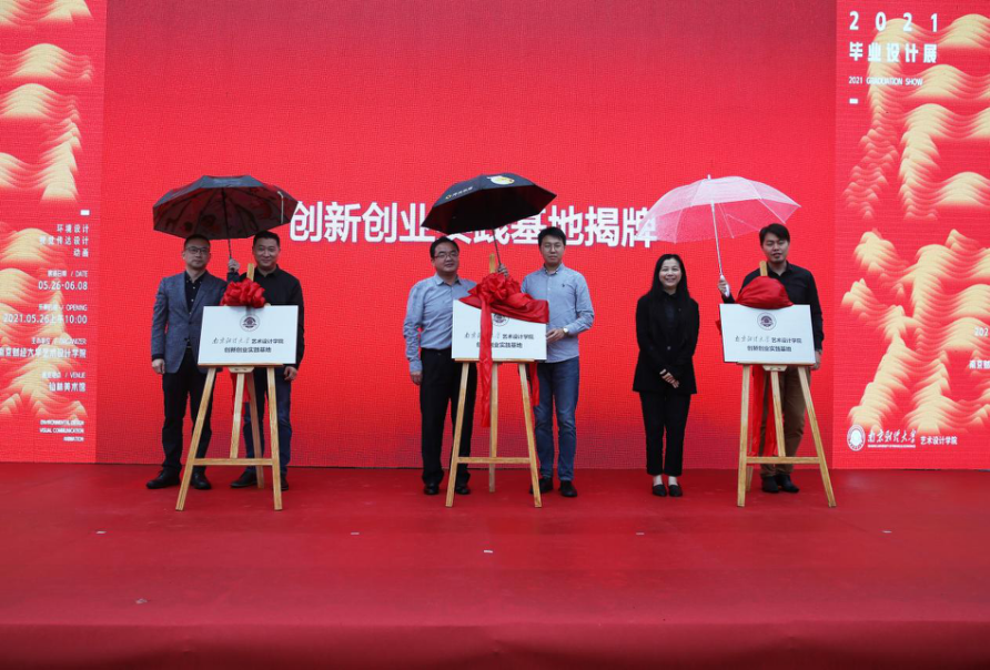 随后,邱伟芬副校长为何晓佑教授颁发兼职教授聘书。艺术设计学院党政领导与江苏瀚港文化发展有限公司、南京视网么信息科技有限公司、南京一粹信息科技有限公司相关负责人共同为艺术设计学院创新创业实践基地揭牌。