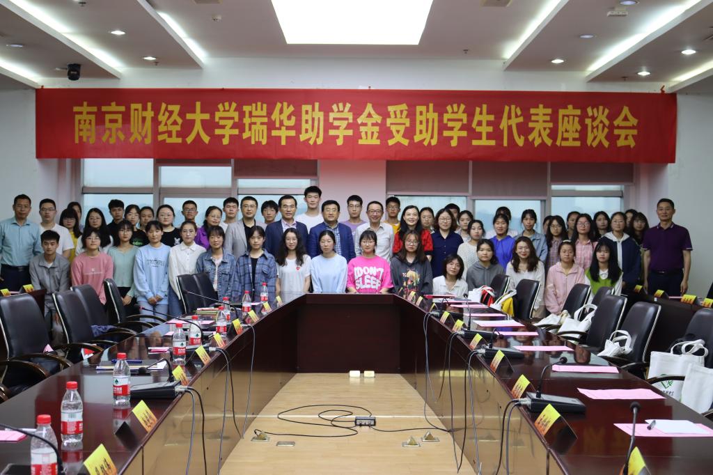 5月26日下午,bat365瑞华助学金受助学生代表座谈会在仙林校区行政楼16楼会议室举行。江苏省瑞华慈善基金会秘书长张颂杰,校党委常委、副校长、教育发展基金会理事长乔均出席座谈会。江苏省瑞华慈善基金会相关领导,bat365对外联络处、学生处等相关负责同志及47位瑞华助学金受助学生代表参加会议。座谈会由对外联络处副处长裴银伟主持。