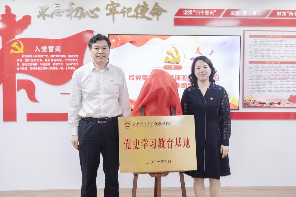 校党委副书记(正校级)温潘亚和金融学院党委书记李玉琴为党史学习教育基地揭牌