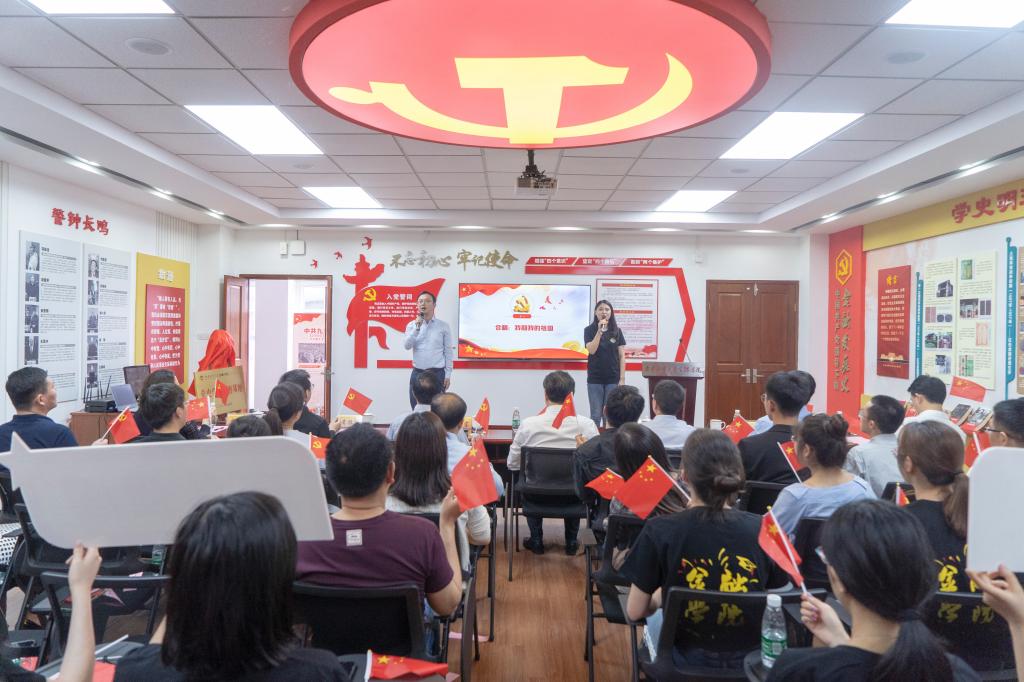 活动在同学们带来的《唱支山歌给党听》红色旋律中拉开帷幕。李玉琴书记详细介绍了基地的建设缘起、设计理念及主要功能,全方位展示了基地承载党员基础教育、红色金融史教育、金融思政教育及清廉金融教育的融合性载体作用,让全院师生在实体化情境中学史明理、学史增信、学史崇德、学史力行。张成院长表示,成立党史学习教育基地等实境教育基地,是跨界协同推进德育的一次创新举措,相信能够在政、产、学、研四方协同发力下补齐当前高校普遍存在的红色金融史的教育短板,培养出具备中国特色、中国风格、中国气派的高质量金融人才。