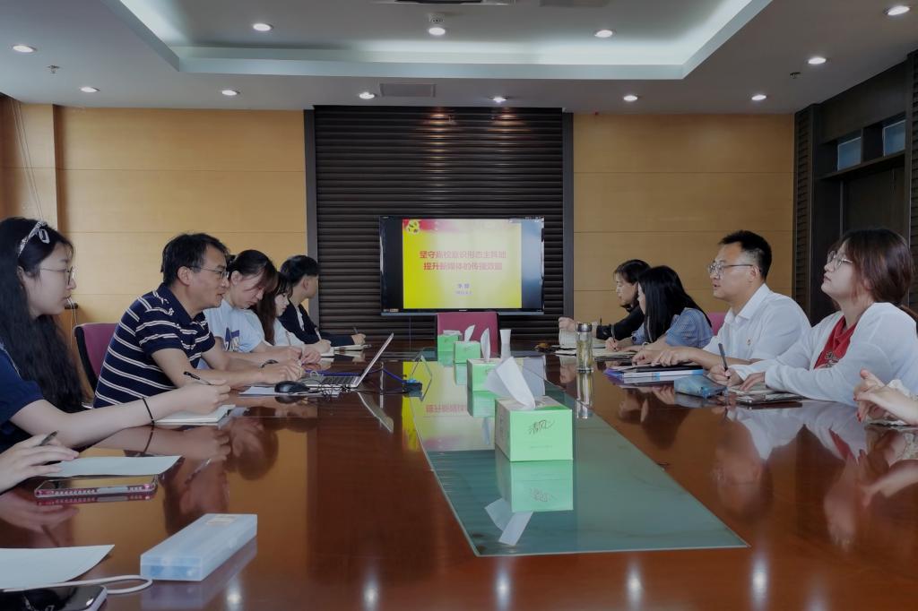 为贯彻落实党中央和省委关于高校意识形态工作决策部署,6月2日下午,党委常委、副校长李群在仙林校区行政楼11楼会议室为校团委党支部、学生处党支部以及新媒体学生组织上了一堂题为“坚守高校意识形态主阵地 提升新媒体的传播效能”的党课、思政课。校团委党支部全体成员、学生处党支部部分党员、招办宣传助理团学生代表、校团委青年媒体中心学生代表参加学习。