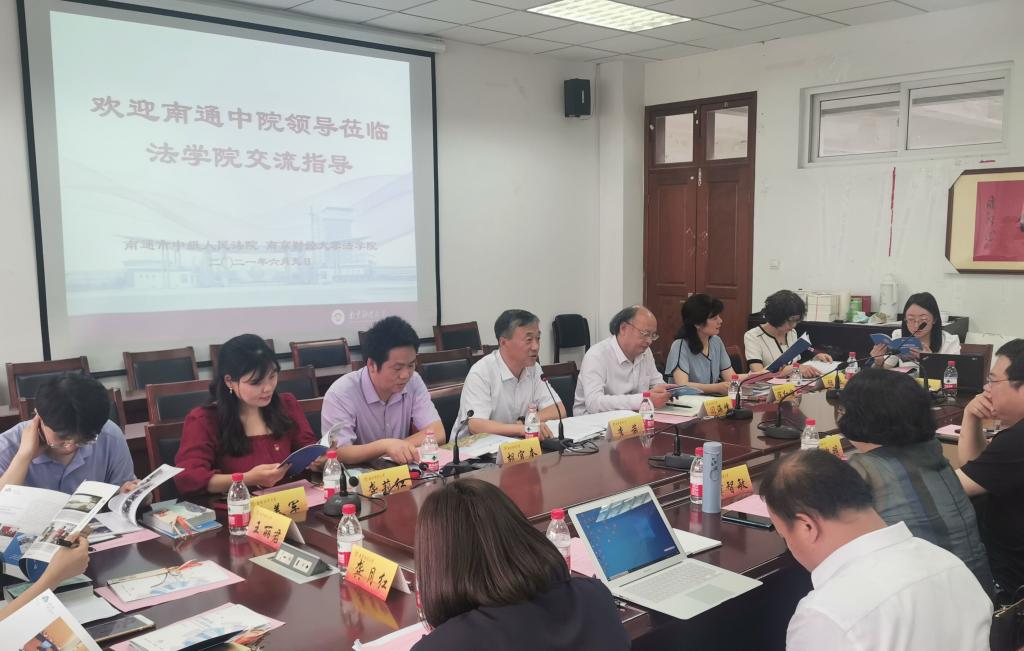 6月9日下午,南通市中级人民法院党组书记、院长曹忠明,政治部主任章智敏一行受邀到法学院座谈交流,党委常委、纪委书记李茜出席座谈会,法学院全体领导班子成员参加座谈会。