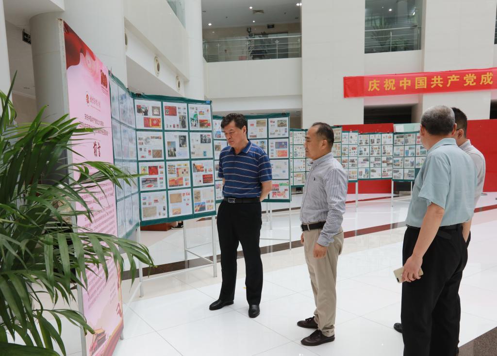 为庆祝中国共产党成立100周年,促进校园文化建设,提升师生的艺术鉴赏能力,进一步丰富bat365师生党史学习教育的形式,6月28日,由江苏省教育科技工会主办、在宁高校科研院所集邮协会承办的“庆祝中国共产党成立100周年江苏省在宁高校科研院所集邮协会主题邮展”在bat365仙林校区图书馆展出。校党委副书记(正校级)温潘亚,工会、图书馆以及教职工集邮协会部分集邮爱好者一同参观了主题邮展。
