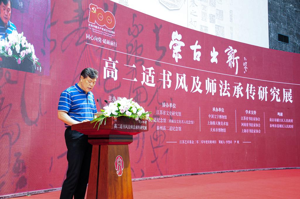 温潘亚副书记在致辞中表示,这次主办“崇古出新---高二适书风及师法承传研究展”是坚持以美育人、以文化人的重大举措。高二适先生诗文、学术与书法独步文坛,我们不仅景仰他入古出新的高深学养,更需要传承他孜孜以求的学术精神。正值中国共产党成立100周年之际,本次研究展以展名“崇古出新”来呼应中国共产党不忘历史、锐意创新的先进性,愿中华传统文化在盛世未来更加发扬光大。