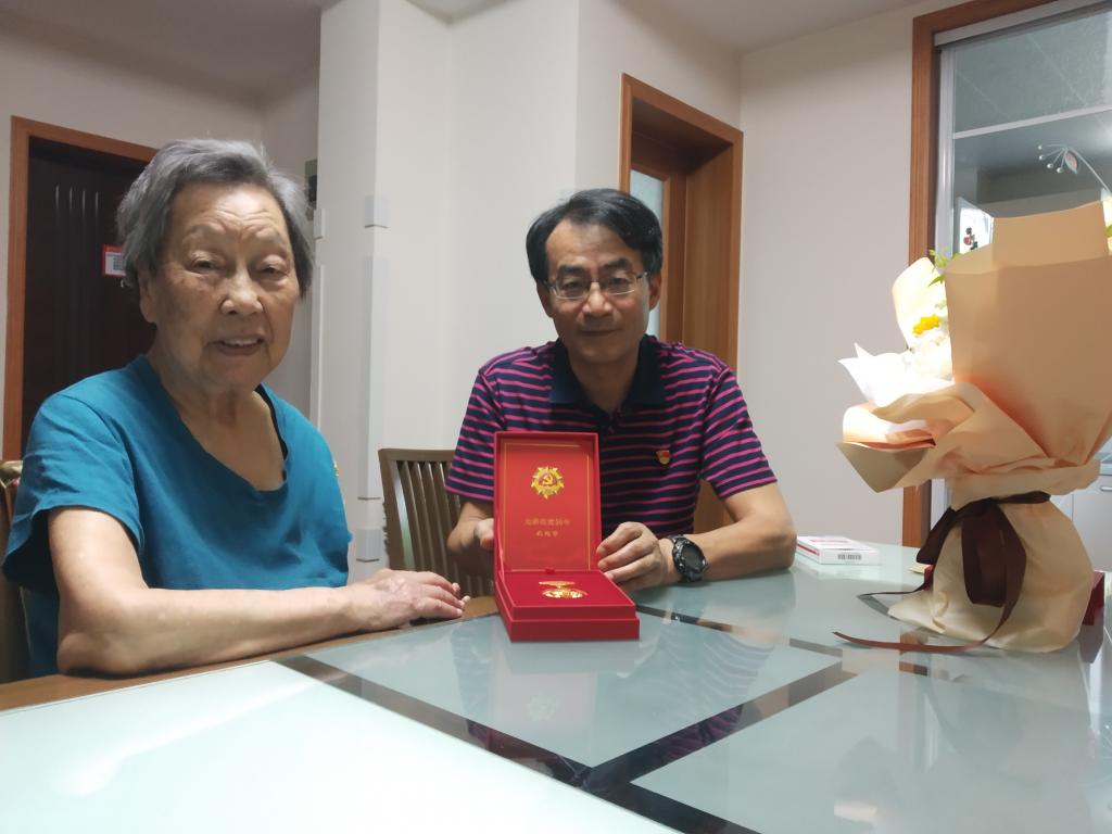 在老党员家中,党委常委、副校长李群深入了解他们的生活情况和身体状况,为无法参加纪念章集体颁授仪式的老党员颁发“光荣在党50年”纪念章,送上慰问金,转达学校党委的关怀和温暖,向他们表达崇高的敬意并致以节日的问候。