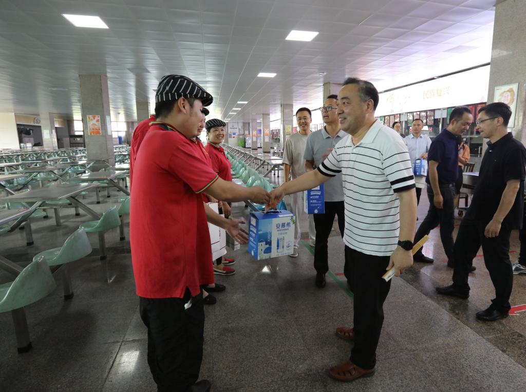 校领导对暑假期间为保障学校各项工作正常有序开展而辛勤工作、默默奉献的一线工作人员等表示衷心感谢,嘱咐大家在做好工作的同时,注意防暑降温,确保健康与安全。校领导强调,学校有关部门和值班人员要一如既往地履行好岗位职责,以高度的责任心和饱满的工作热情,全力以赴做好假期各项工作。要科学规划、统筹安排、扎实推进,全力完成暑期维修改造任务,确保工程质量和工程进度;要坚持安全为先、质量为本,严格遵循各项管理制度和规范要求,落实好防火防盗、水电安全、食品安全等措施,严把疫情防控和施工安全关;要进一步强化责任担当,落实好假期人员的值班安排,加强对校内的监控与巡查工作,确保校园安全稳定、和谐有序。