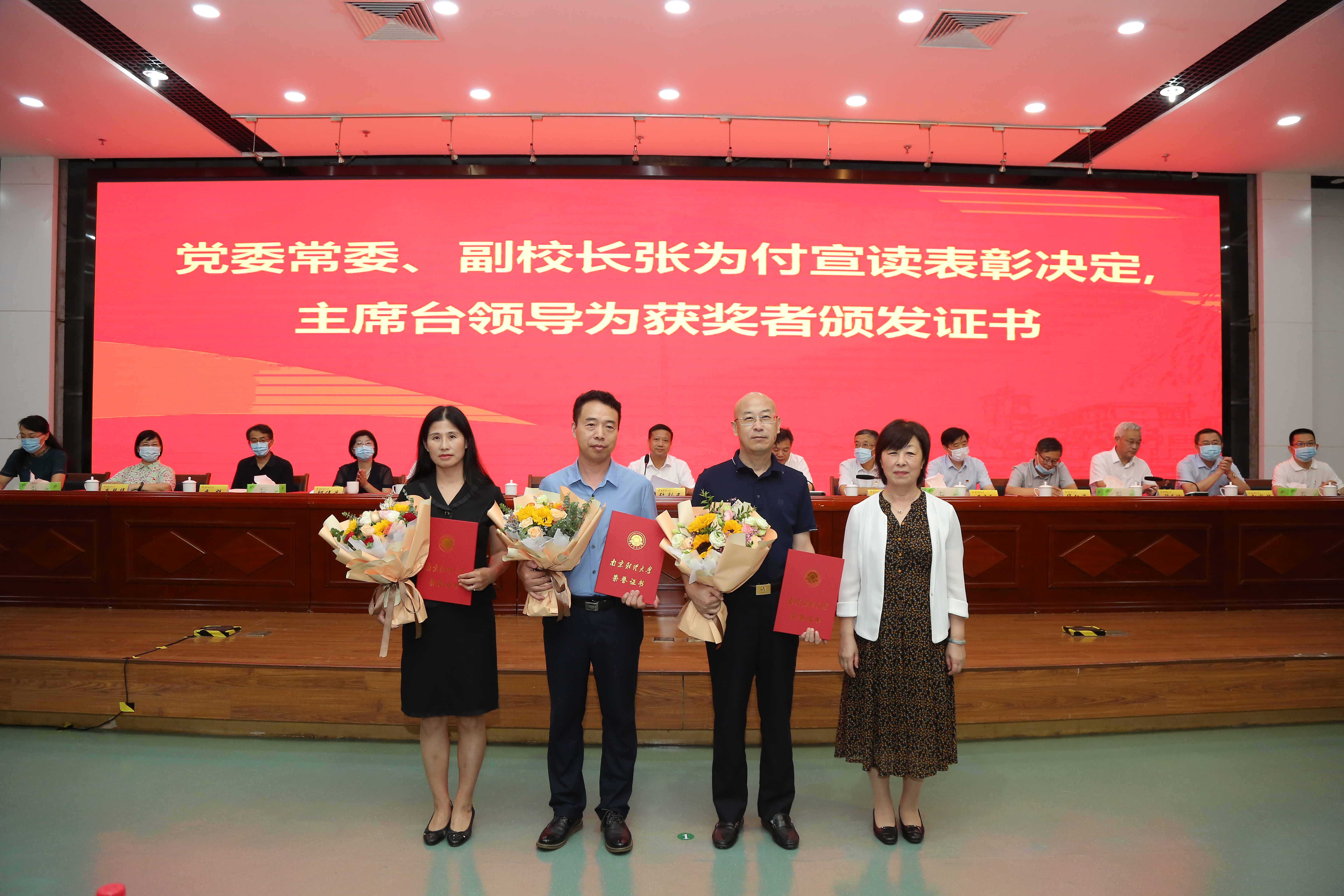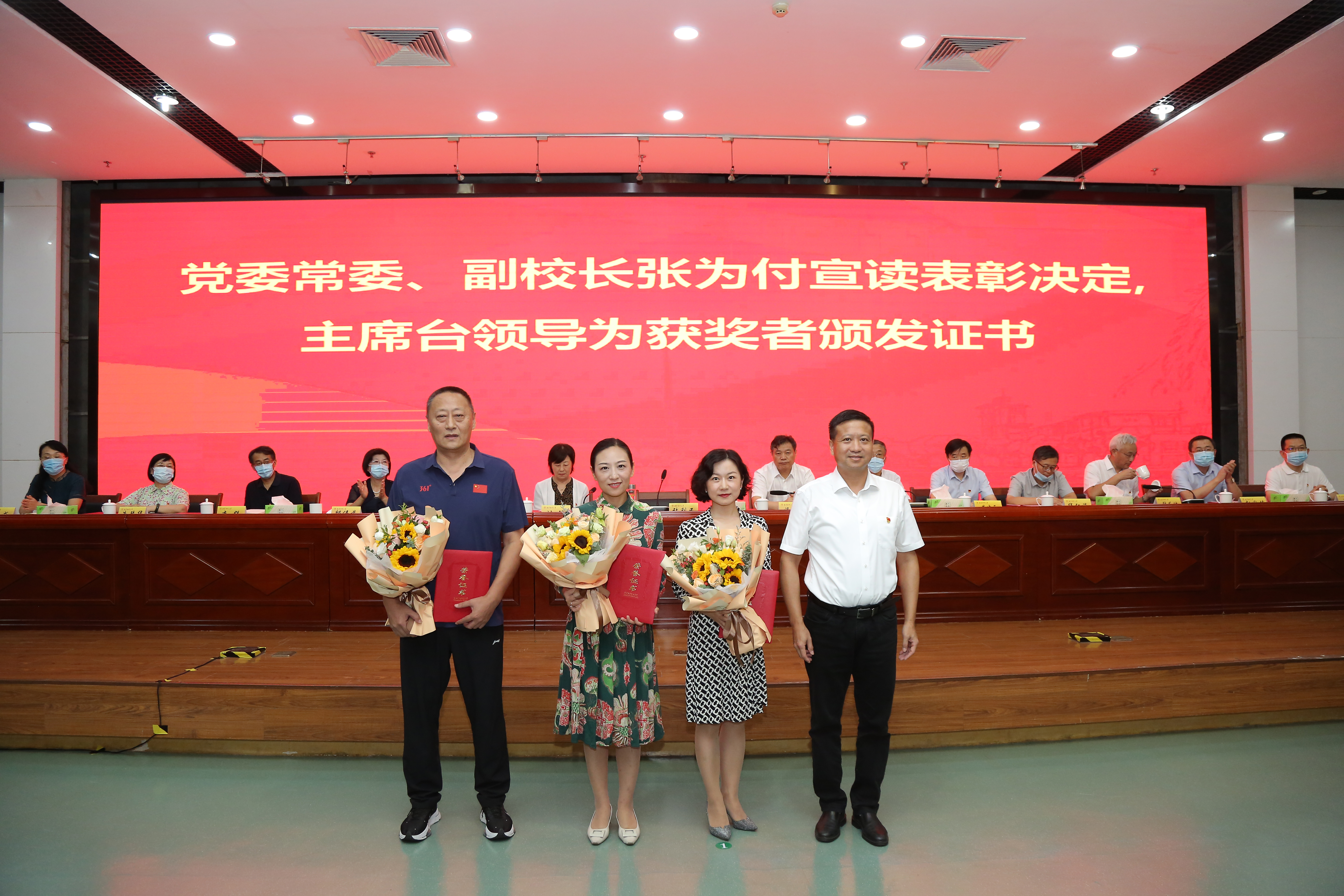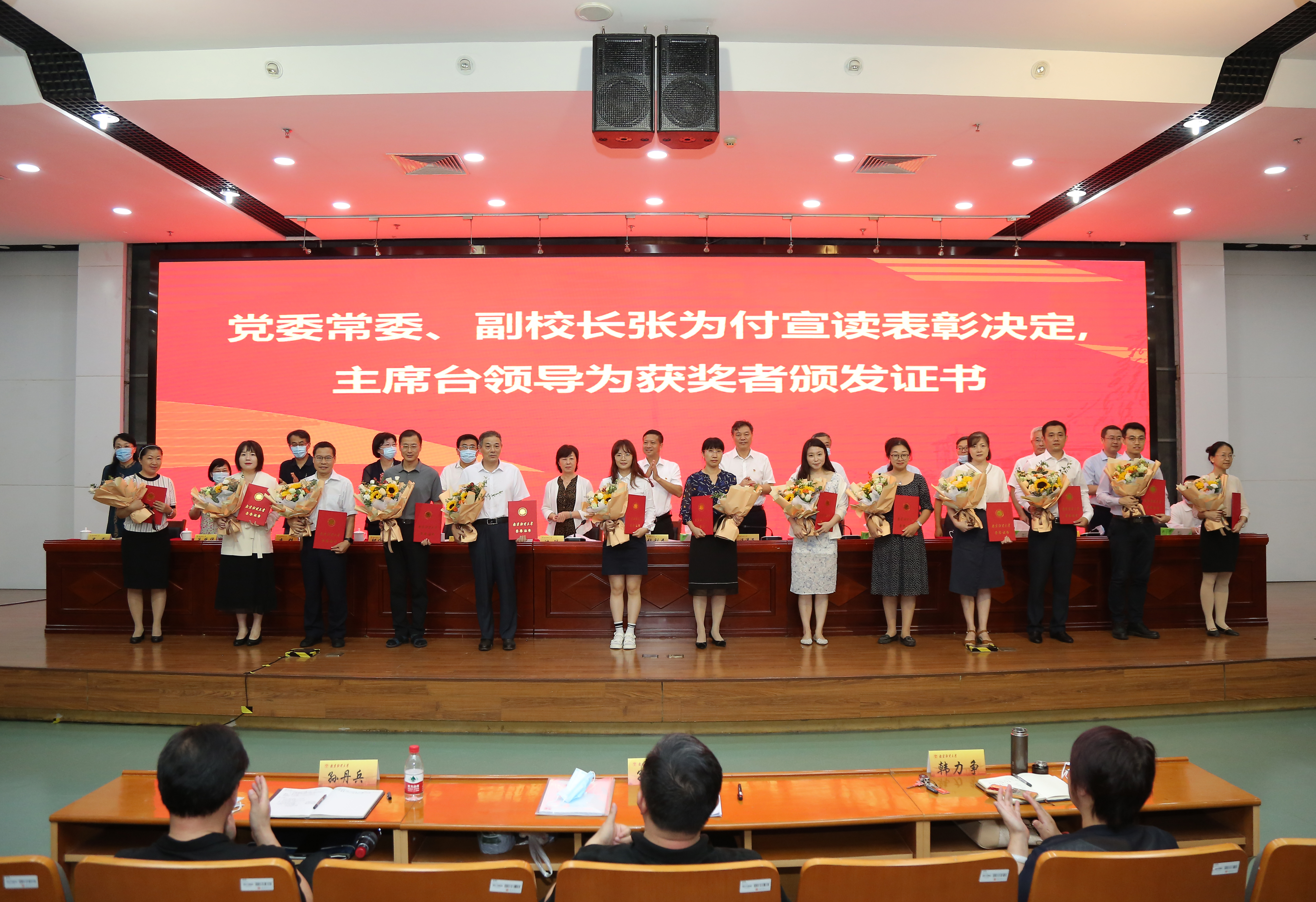 主席台校领导为2020年度教师师德师风考核优秀人员颁奖