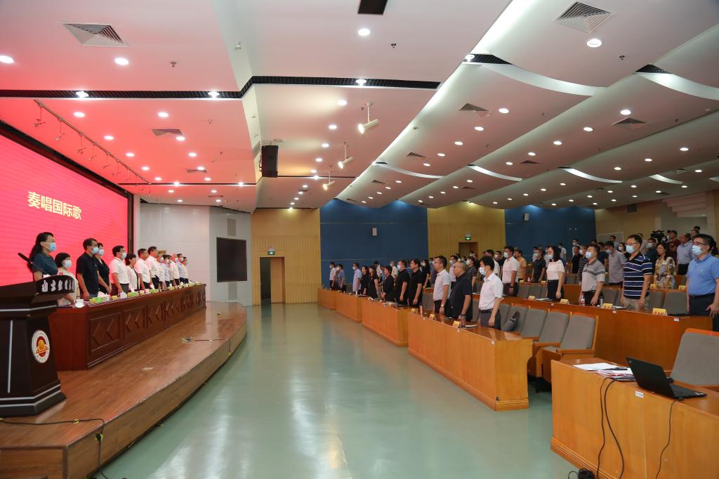9月4日下午,中共bat365官方网站委员会三届六次全会、新学期工作部署会暨第37个教师节表彰大会召开。会议设主会场与分会场,分会场以视频直播的形式进行。全体在宁校领导,全体党委委员、纪委委员,全体中层干部,民主党派代表,教职工代表分别在仙林校区图书馆一楼报告厅、行政楼二楼报告厅和工科楼二楼会议室参加会议。会议由校党委书记张利民主持。会议在庄严的国歌声中拉开帷幕。
