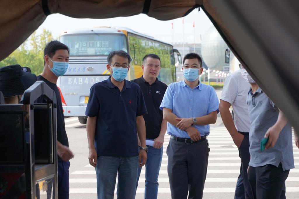 此次演练按照开学返校真实场景进行,重点对学生返校报到入校流程的防控管理,各环节的有序衔接进行演练。在南门入口处,学生全程佩戴口罩,间隔1米,依次有序进入返校专用通道,接受体温检测,由安保人员核验健康码,核对身份信息无误后进入校园。进入南门,学生可选择乘坐自己所在宿舍区的接驳车前往宿舍。学生公寓入口处,学生需接受二次测温,并进行信息登记,经宿舍管理人员查验合格后方能入住。在各环节若发现学生体温异常,由医疗防治及应急组在指定区域再次核查、处理。核查体温(腋温)超过37.3度的发热者,由医疗防治及应急组立即转去定点医院发热门诊就诊。就诊结束后,按学校疫情防控工作要求进行后续跟踪工作。演练现场,各单位严格按照预定方案进行,参加演练的人员分工明确、配合密切,各项工作严谨规范、有条不紊。