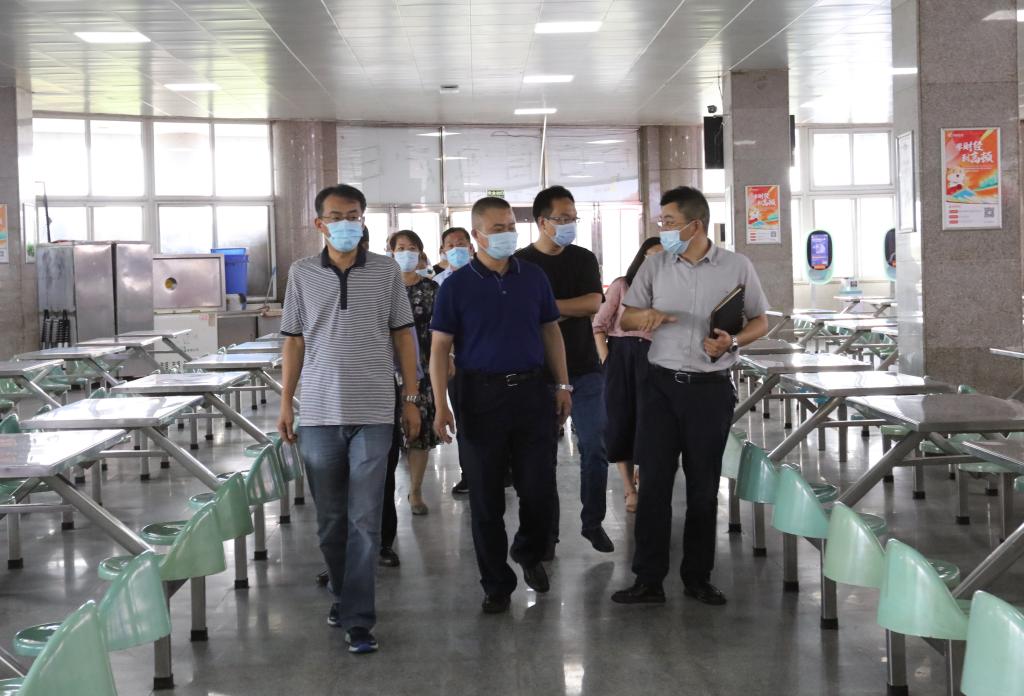 祁寿东副局长一行先后查看了校医院、中苑食堂、学生宿舍、隔离场所等学校防控重点点位,就卫生防疫消毒、就餐安全、防疫物资储备、隔离场所设置等防疫措施落实情况进行了现场检查和指导。