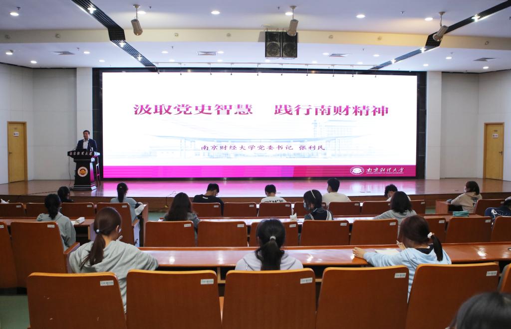 张利民书记强调,学校广大青年学子要牢记习近平总书记在庆祝中国共产党成立100周年大会上的谆谆教诲和殷切期望,切实肩负起时代赋予的神圣使命,在激扬奋斗中不负青春年华。他对同学们提出三点要求:一是要体会和理解南财精神。希望大家在南财大好好地品味“艰苦奋斗、自强不息、抢抓机遇、敢为人先”的南财精神,并让它成为成长的不竭精神动力。二是要传承和践行南财精神。希望大家学习学校优秀教师和优秀学生的先进事迹,让南财精神始终伴随一辈子、践行一辈子。三是要书写属于自己的南财故事。希望大家心怀国之大者,做有理想信念的新时代青年;锤炼品德修为,做有高尚情操的新时代青年;练就过硬本领,做有扎实学识的新时代青年;矢志创新创造,做有担当作为的新时代青年。