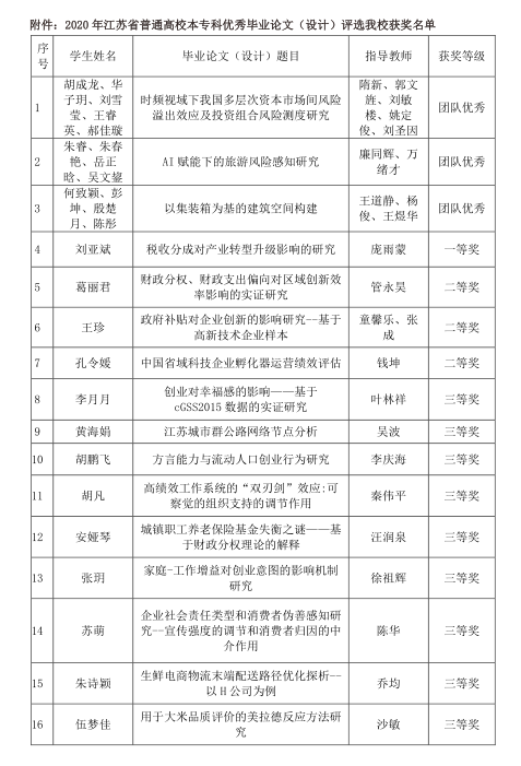 附件:2020年江苏省普通高校本专科优秀毕业论文(设计)评选bat365获奖名单