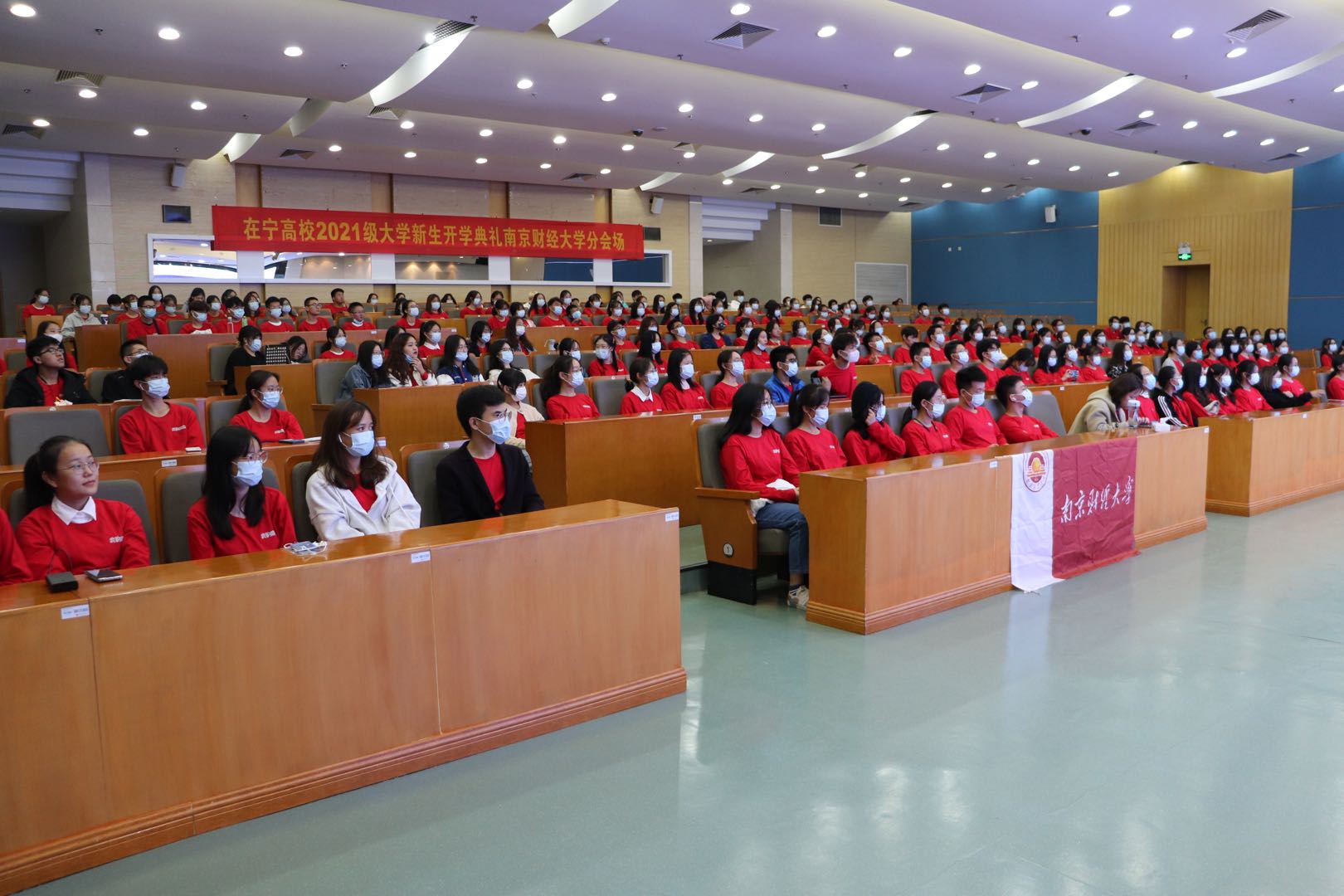 在仙林校区图书馆报告厅分会场,bat365新生代表们集中观看了开学典礼。在与主会场互动环节,当镜头切换到bat365官方网站分会场时,同学们精神昂扬向主会场挥手示意,向活动嘉宾和南京其他高校展示了南财学子们积极向上的精神面貌。