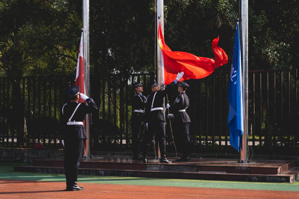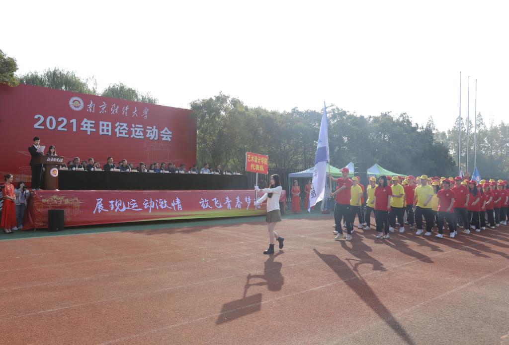 在庄严的国歌声中,国旗冉冉升起,热血在心中飘扬;伴随着悠扬的校歌旋律,校旗和运动会会旗徐徐上升,迎风招展,南财精神在心中荡漾。