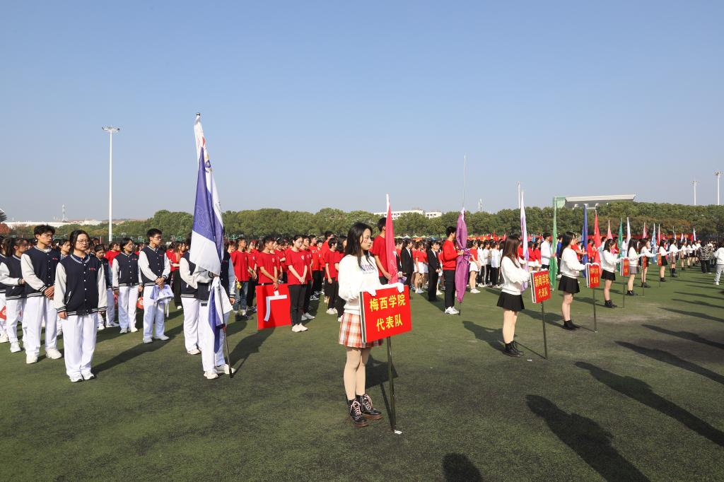 时现副校长致开幕词。时现副校长代表学校,对运动会的顺利召开表示祝贺,向为本次运动会付出辛勤劳动的教职员工和同学们表示感谢,向参加运动会的各位裁判员、教练员和运动员致敬。时现副校长表示,尽管疫情不断反复,但仍然阻挡不了全校师生参与体育运动的热情。一年一度的运动会不仅是一次体育盛会,更是广大师生激扬青春、展示风采的舞台。在紧张激烈的赛场上,希望各位裁判员严格比赛规则,公平、公开、公正裁决;希望各位运动员遵守纪律,服从裁判,顽强拼搏,赛出风格、赛出成绩;希望广大师生文明观赛,为运动员摇旗呐喊,加油鼓劲。最后,时现副校长预祝本次运动会取得圆满成功。