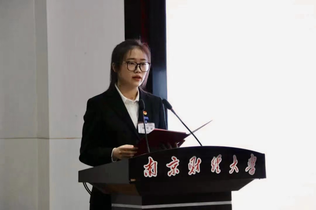 江苏省学生联合会驻会执行主席姜佳慧同学代表省学联向大会召开表示祝贺