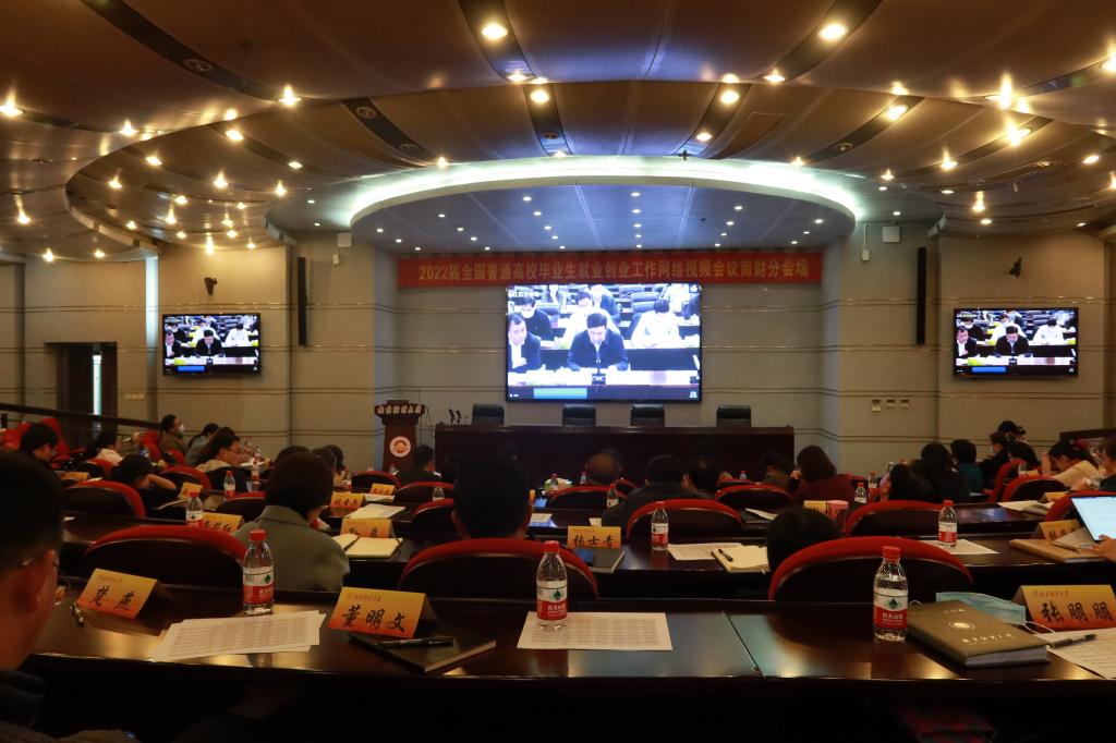 11月19日下午,教育部、人力资源和社会保障部共同主办的2022届全国普通高校毕业生就业创业工作网络视频会议召开。教育部党组书记、部长怀进鹏,人力资源和社会保障部党组成员、副部长李忠出席会议并讲话,教育部党组成员、副部长翁铁慧主持会议。bat365在仙林校区行政楼二楼报告厅设分会场。党委常委、副校长李群出席会议,学生处、党委研究生工作部、团委、教务处等相关部门负责人,各学院党委(党总支)书记、副书记、相关研究生培养单位负责人、2022届全体毕业班辅导员参加会议。
