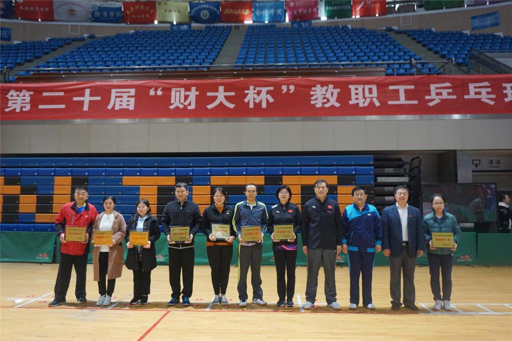 初冬暖阳映校园,高手切磋聚球场;拼技斗勇小银球,强健体魄活力扬。11月20日,由校工会主办,体育部、校大学生乒乓球协会协办的第二十届“财大杯”教职工乒乓球比赛在仙林校区体育馆举行。由校党委书记张利民为领队,校党委副书记温潘亚(正校级)为教练,党委常委、副校长时现、乔均、邱伟芬、张为付为队员组成的校领导代表队全程参与比赛,与来自各分工会的21支代表队近170名老师们同场竞技,共享乒乓的激情与快乐。温潘亚副书记致开幕词并宣布比赛开始。开幕式由校工会主席冯玉川主持。