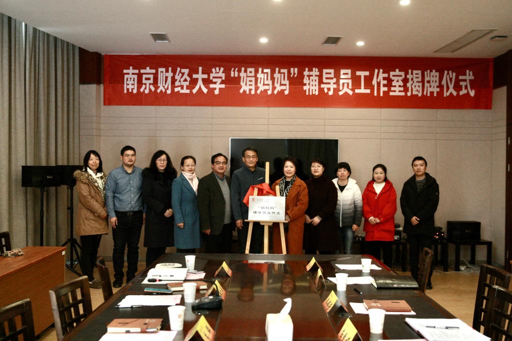 与会领导和老师共同为“娟妈妈“辅导员工作室揭牌。