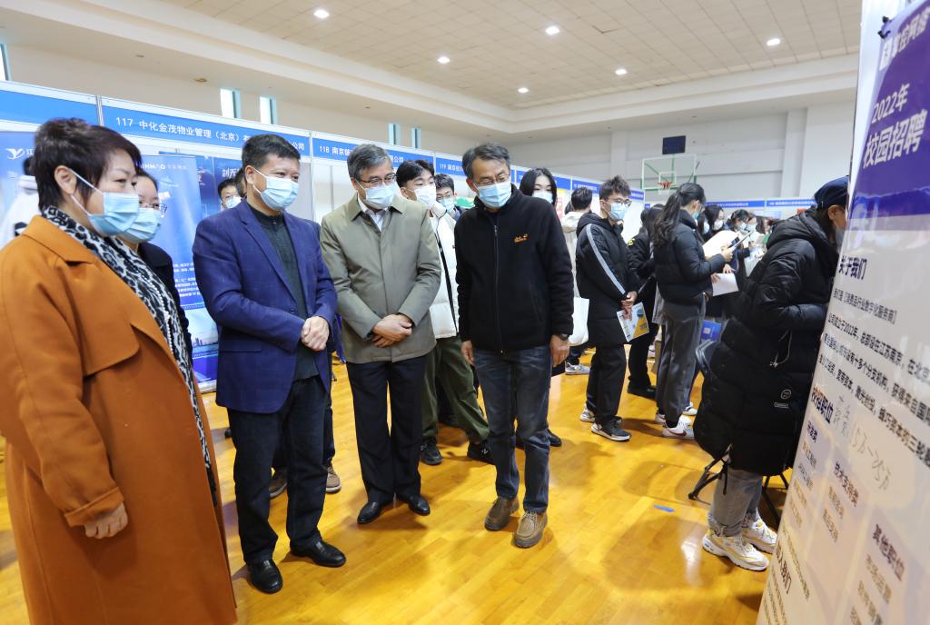 省招生就业指导服务中心主任胡建平,校党委书记张利民,党委常委、副校长李群深入招聘会会场