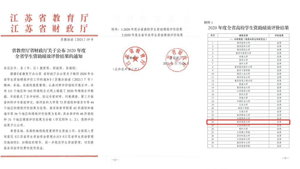 近日,省教育厅、省财政厅下发了《关于公布2020年度全省学生资助绩效评价结果的通知》(苏教助函〔2021〕19号),bat365获评2020年全省学生资助绩效考核评价优秀单位。按照省学生资助管理中心的要求,学校积极贯彻执行各项资助政策和文件精神,落实政策制度、加强队伍建设、夯实基础管理、提升理论修养、创新工作方法,取得了明显成效。这是bat365连续第十一年获此殊荣。