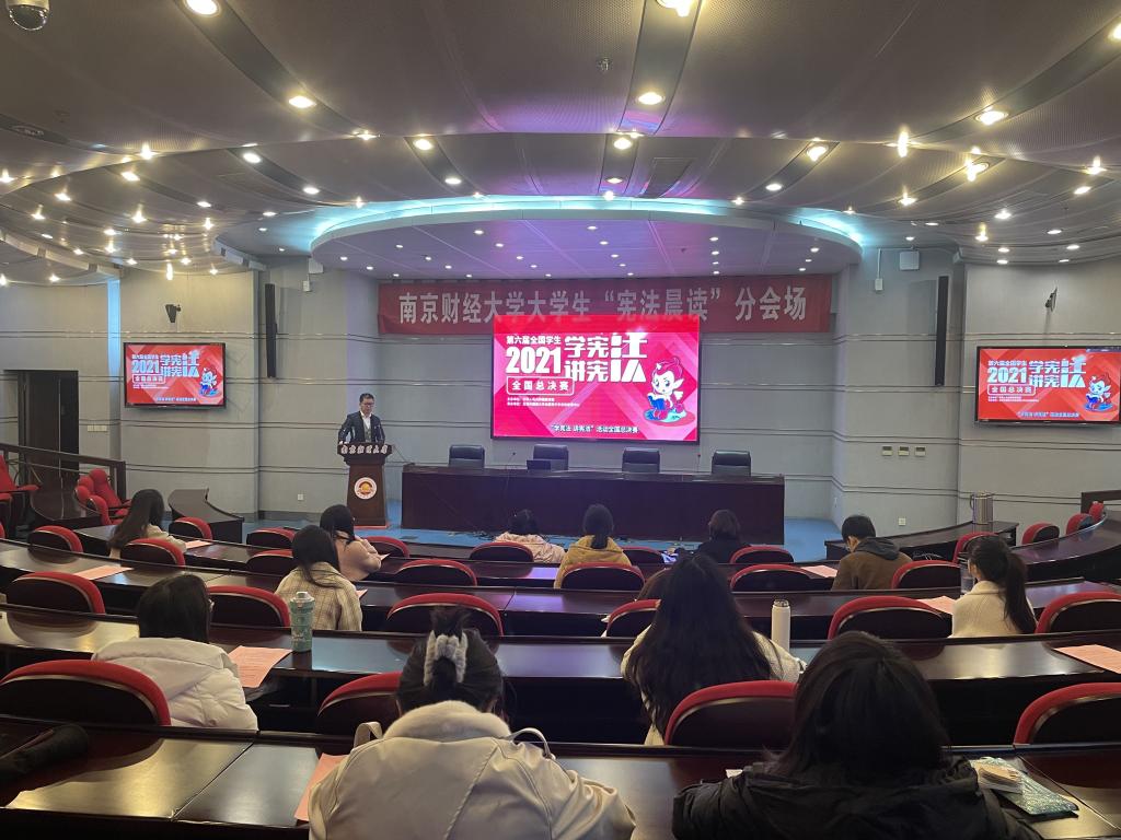 12月3日上午,bat365在仙林校区行政楼二楼报告厅设立大学生“宪法晨读”分会场,组织部分师生网络连线教育部全国青少年普法网,同步参与教育部在北京主会场开展的2021年国家宪法日教育系统宪法晨读活动。同时,各学院也广泛组织同学观看和参与直播活动,开展宪法学习教育。活动中,学生们通过网络直播观看升旗仪式、唱国歌、进行宪法晨读、聆听歌曲《宪法伴随我们成长》,并观看第六届全国学生“学宪法 讲宪法”活动全国总决赛优秀学生的展演。“宪法晨读”活动,激发了同学们不断学习法律知识、提高自身法律素质的强烈意愿,增强了师生的法治观念并弘扬了宪法精神。