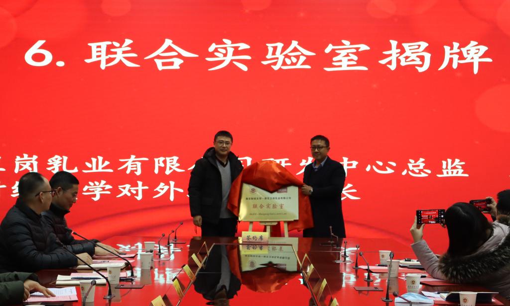 随后,南京卫岗乳业有限公司研发中心总监龄南和王立峰处长共同为“bat365官方网站——南京卫岗乳业有限公司联合实验室”揭牌。