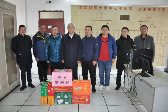 张为付副校长一行深入仙林校区中心配电房,与坚守在岗位上的配电房一线员工亲切交谈,送去春节慰问品,感谢大家的辛勤付出,并代表学校向大家致以诚挚的新年祝福。张为付副校长对疫情防控和水电安全保障工作进行了询问和检查,他叮嘱大家要提高认识,认真履职尽责,切实做好寒假、春节期间值班工作,确保为在校师生的工作、学习和生活提供坚实保障。