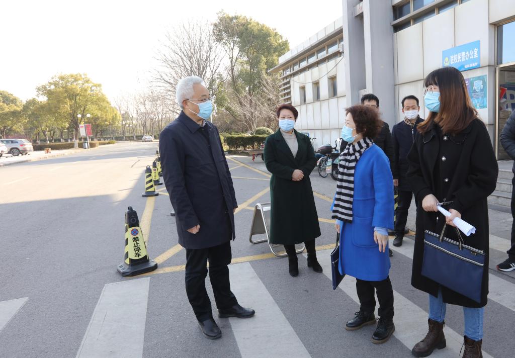 2月27日,江苏省卫生监督所学校卫生监督处处长冯向明一行来bat365督导检查疫情防控工作。党委常委、副校长张为付,党校办、学生处、研工部、保卫处、后勤基建处等相关部门负责同志陪同检查。