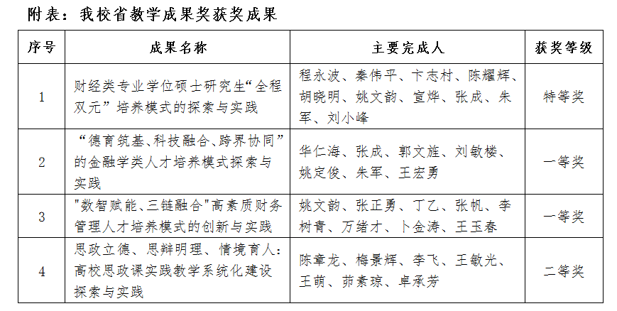 据悉,江苏省教学成果奖每四年评选一次,代表了全省教学成果的最高水平。本次评选工作经省教学成果奖评委会评选、公示、省教育厅审定并报请省政府批准,共评选出高等教育类成果奖250项,其中特等奖30项、一等奖80项、二等奖140项。