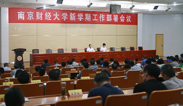 校党委书记陈章龙讲话。他强调要重点抓好新学期六个方面的工作:第一,以深入开展“两学一做”学习教育为抓手,加强和改进党建思想政治工作。要认真贯彻习近平总书记重要指示精神,落实好省委、省委教育工委的决策部署,按照学校实施方案的要求,推动学习教育扎实深入开展,把“学”的基础打得更牢、“做”的关键抓得更紧,更加注重“学”和“做”的有机统一、知行合一。要注意强化问题导向。学要带着问题学,做要带着问题改。第二,以一流学科建设为基础,推进高水平大学建设。江苏高水平大学建设对学校来说是重大的发展机遇。能否抓住这次机遇,决定了学校能不能赢得主动、赢得优势、赢得未来。学科建设是高水平大学建设的核心基础,必须集中精力做大做强部分学科,带动所有学科的发展。要坚持学科建设的龙头地位不动摇,这个认识要真正地落到实处,要深入到骨髓。全面提高学科建设水平。要遴选好学科带头人,构建层次多元、结构合理、协调发展的学科体系,进一步凝练学科方向,创新学科建设管理体制。第三、以迎接教育部本科教学审核评估为契机,提高人才培养质量。本科教育是高水平大学建设的底色,要坚持“本科为本”;认真做好迎接教育部本科教学审核评估各项工作;着力实施本科教学改革与质量提升六大工程。第四、以高层次人才引进为关键,打造高水平师资队伍。一流的师资是创建高水平大学的关键,要着力加强人才引进特别是高层次人才引进,着力加强青年教师队伍建设。第五、以学术、校友和师生为主题,办好60周年校庆。校庆是学校发展历史上的一个重要里程碑,办好校庆是学校今年下半年重中之重的工作。要牢牢把握住主题,不作排场,不作表面文章。要突出学术性,做好校友联系和接待工作,动员全校师生积极参与。第六、以“四讲四有”为标准,争做合格党员干部。讲政治有信念,重在学习系列讲话、增强“四个意识”,做到政治合格;讲规矩有纪律,重在尊崇党章党规、严格自我要求,做到守纪合格;讲道德有品行,重在弘扬优良作风、坚守精神高地,做到品德合格;讲奉献有作为,重在勇于担当负责、积极干事创业,做到发挥作用合格。最后,陈章龙书记希望大家更加紧密地团结起来,坚定信心,务实苦干,开拓创新,一心一意谋发展,聚精会神抓改革,努力实现“十三五”良好开局,为建设有特色高水平财经大学作出新的更大的贡献!