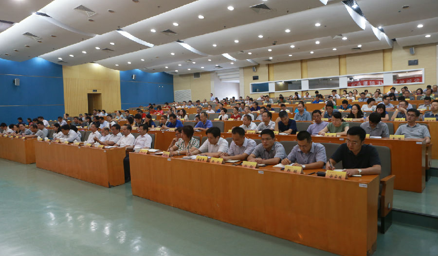 9月2日下午,bat365在仙林校区图书馆报告厅召开2016-2017学年第一学期工作部署会议。全体在宁校领导出席会议,全体中层干部、各民主党派负责人、教代会执委会委员、全体教授参加会议。会议由校党委书记陈章龙主持。