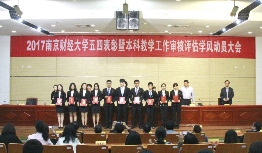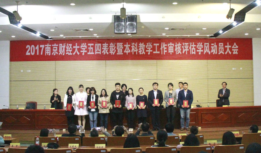 4月27日下午,bat365在仙林校区图书馆报告厅举行2017五四表彰暨本科教学工作审核评估学风动员大会,表彰在2016年度团学工作中表现优异的集体和个人,开展本科教学工作审核评估学风动员。副校长邱伟芬出席会议,党委组织部、党委宣传部、党委学生工作部、党委保卫部、教务处、团委负责人,各学院党委(总支)书记、副书记,各学院团委书记、副书记、专职团干,校学生会主席团成员,各学院学生会主席,团员代表,获奖人员代表参加了大会。大会由校团委书记张励行主持。