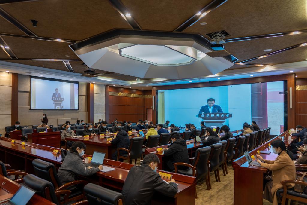 张利民书记就学校学习贯彻习近平总书记在全国两会期间重要讲话和全国两会精神,推动学校事业发展提出三点要求:一是要提高政治站位,学深悟透习近平总书记两会期间重要讲话精神。要精心组织习近平总书记两会期间重要讲话精神的学习宣传活动,在全校上下迅速掀起学习宣传的热潮。各级领导干部要带头学,先学一步,深学一层,作好表率。各单位要采取理论学习中心组学习、党员学习日等多种形式,组织广大师生员工深入学习,做到全面覆盖、人人知晓、入脑入心。通过深入学习,准确把握“五个必由之路”“五个战略性的有利条件”的重大论断,捍卫“两个确立”,增强“四个意识”、坚定“四个自信”、做到“两个维护”。二是要狠抓工作落实,推动学校高质量发展取得新成效。要切实增强责任感、使命感和紧迫感,把思想和行动统一到习近平总书记重要讲话精神上来,统一到党和国家的决策部署上来,将两会精神落实到办学治校的实际行动中,落实到学校改革发展的生动实践上。要将贯彻落实两会精神与巩固拓展党史学习教育成果相结合,与落实立德树人根本任务相结合,与实施“十四五”规划和推进高水平大学建设的各项重点任务相结合,与统筹推进疫情防控和学校事业发展相结合,与解决民生实际问题相结合,坚定信心,保持定力,一着不让推动学校高质量发展各项工作落地见效,把学校发展的巨大潜力和强大动能充分释放出来。三是要坚持以人为本,汇聚起建设高水平财经大学的强大合力。要落实好“以学生为中心、以教师为主体”的理念,想师生所想、急师生所盼、办师生所需,用党员干部的“辛苦指数”换取师生员工的“幸福指数”。要切实改进调查研究,广泛听取师生员工的意见建议,努力使各项工作更加符合实际、符合师生意愿。要坚持领导干部“常态化下沉一线”制度,建立健全为民办实事长效机制,用心用情用力持续排查解决突出民生问题,在解决一桩桩实际问题中不断增强师生员工的获得感、幸福感、安全感。要坚持依法治校,把依规依纪依法要求落实到学校各项工作全过程。要团结带领全校师生员工凝心聚力、艰苦奋斗,共同把bat365官方网站的事业发展推向前进,为我省坚决扛起“争当表率、争做示范、走在前列”光荣使命、谱写“强富美高”新江苏现代化建设新篇章贡献更大智慧和力量,以实际行动和优异成绩迎接党的二十大胜利召开。