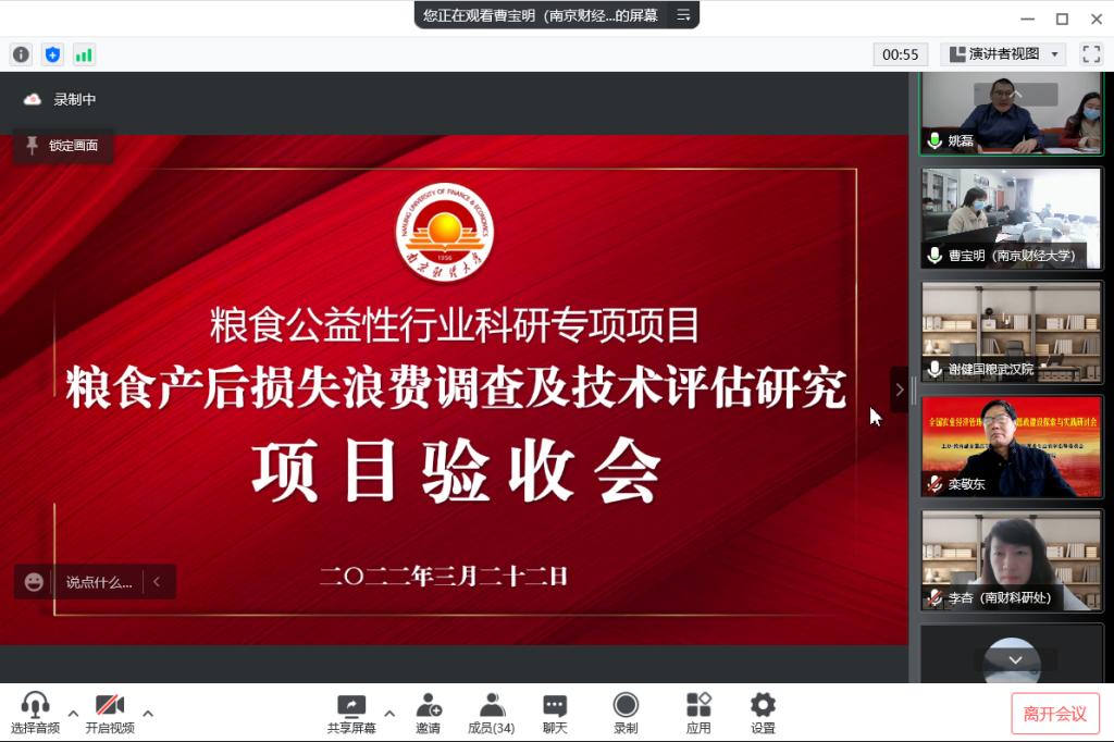 3月22日,国家粮食和物资储备局安全仓储与科技司和财务审计司共同组织召开了粮食公益性行业科研专项“粮食产后损失浪费调查及评估技术研究”项目验收会议,组织专家对项目技术任务完成情况以及项目经费预算执行与使用情况进行了验收。验收专家组由来自中国粮油学会、北京国贸东孚工程科技有限公司、中储粮南京分公司、郑州中粮科研设计院、国粮武汉科研设计院、东南大学、华中科技大学、南京农业大学、南京审计大学、安徽农业大学、河南工业大学、江苏天勤会计师事务所、江苏中天华夏会计师事务所的13位专家组成,郑州中粮科研设计院教授级高工唐学军担任专家组组长,中国粮油学会教授级高工于衍霞、江苏天勤会计师事务所注册会计师胡春才担任副组长。国家粮食和物资储备局安全仓储与科技司副司长张成志,bat365党委常委、副校长华仁海出席项目验收会议。