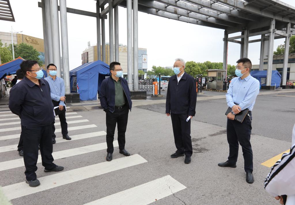 4月26日上午,仙林大学城管委会副主任张弨带领属地“五大员”工作专班现场督查指导bat365疫情防控工作,党委常委、副校长、校疫情防控工作小组组长张为付及相关部门负责人陪同检查。