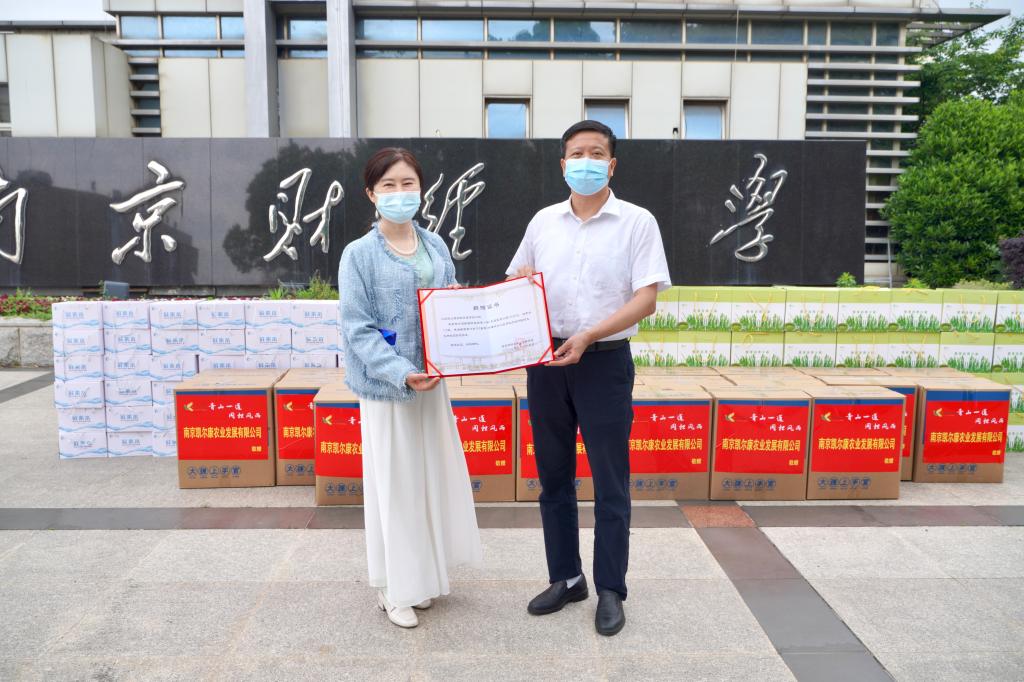 4月27日,江苏凯尔康国际贸易有限公司向bat365捐赠防疫物资,包括5万只医用口罩、720瓶硅素水、300盒德逸嫩苗青汁粉。校党委书记张利民,校党委副书记(正校级)温潘亚,南京市政协委员、南京市政协文教卫体委员会副主任(兼)、江苏凯尔康国际贸易有限公司、南京凯尔康农业发展有限公司董事长兼总经理钱明洁,副总经理徐承龙、朱海菊,市场总监张莉佳,bat365党校办、党委宣传部、校工会、保卫处、机关党委、后勤基建处等有关部门负责同志参加捐赠活动。
