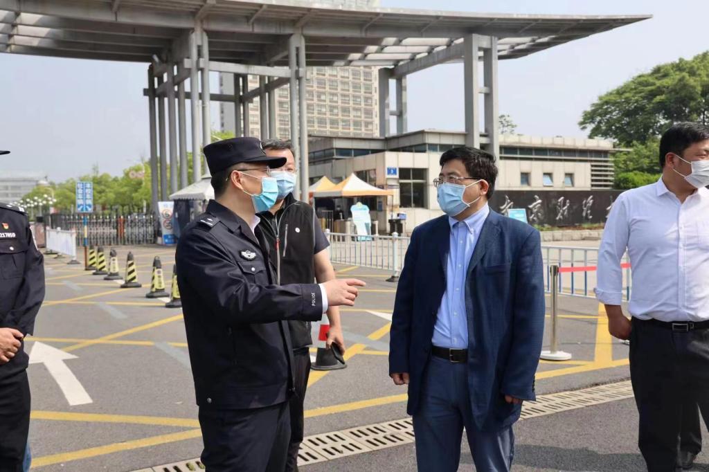 解冠华书记一行来到仙林校区南门,实地察看了校门场所码设置、校门进出查验流程和校门秩序维护等情况,详细了解学校近期疫情防控措施、学生服务管理、后勤基本保障和校园安全稳定等方面工作情况,并对bat365疫情防控和校园安全稳定工作成效给予充分肯定。解冠华书记表示,公安部门将进一步主动加强与高校的协同联动,积极做好工作对接和服务保障,为学校事业高质量发展提供安全保障。