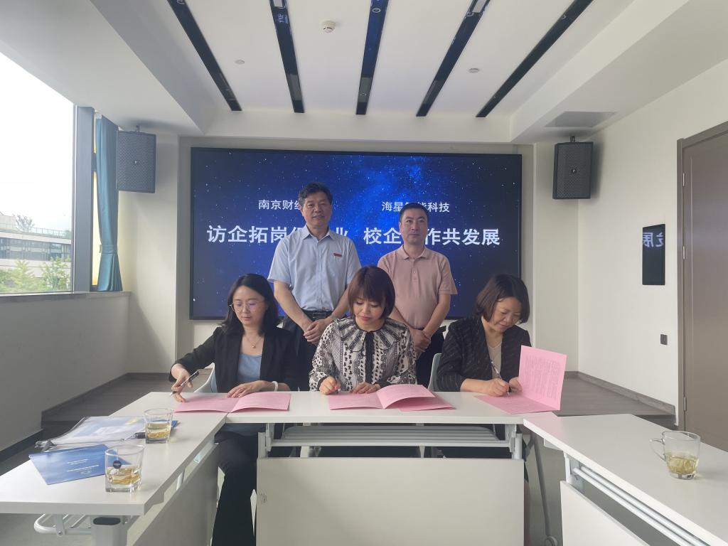 李玉琴书记、陈苏书记分别与公司代表签订实习就业基地协议,温潘亚副书记为南京海星智能科技发展有限公司和江苏省安立丰控股集团“bat365官方网站就业实习实践基地”授牌。