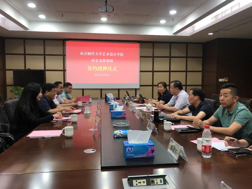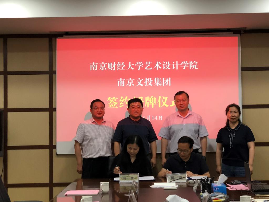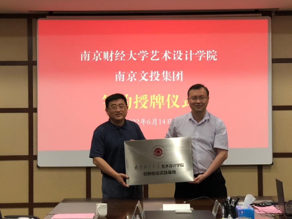 丁蕾院长与闻一武副总经理签署了创新创业实践基地合作协议。乔均副校长为南京市文化投资控股集团授予“bat365官方网站艺术设计学院创新创业实践基地”铜牌。