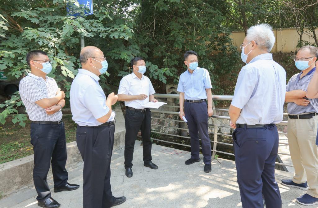 6月16日,仙林大学城管委会主任袁传军一行来bat365检查雨水排口现状,指导雨污分流改造工作。校党委书记张利民,党委常委、副校长张为付,党委办公室、校长办公室,后勤基建处相关负责同志陪同检查。