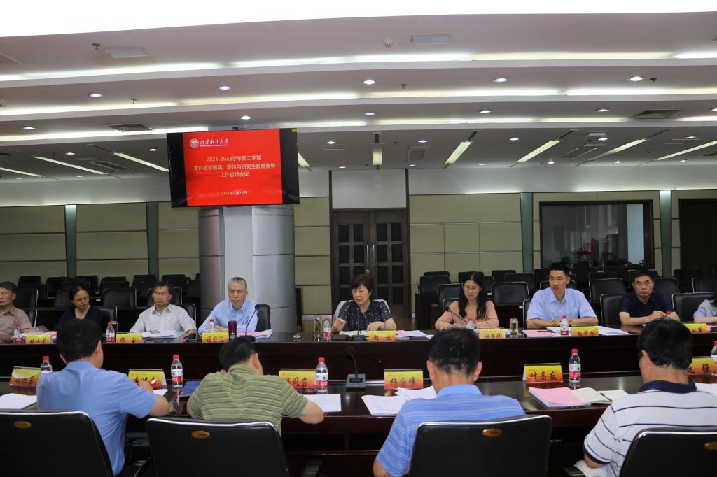 6月15日上午,bat365在仙林校区行政楼16楼会议室召开2021-2022学年第二学期本科教学督导、学位与研究生教育督导工作总结会议。党委常委、副校长时现,研究生院、学生处、人事处、评估及质量监控中心相关负责人,本科教学督导、学位与研究生教育督导等参加会议。会议由评估及质量监控中心主任阚京华主持。